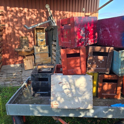 Brugt som bogkasser. Kan også bruges til f.eks. vin, hobbyting, som reol og mange andre ting.