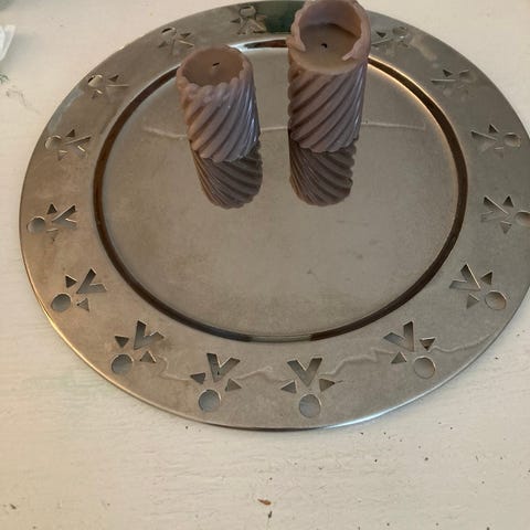 Rustikt gammelt marokkansk metalfad/fad/bakke/fuglebad/metalbakke/ metalbord/bord med 3 ben, som kan skrues af og på. Dia 50 cm. H med ben 18 cm