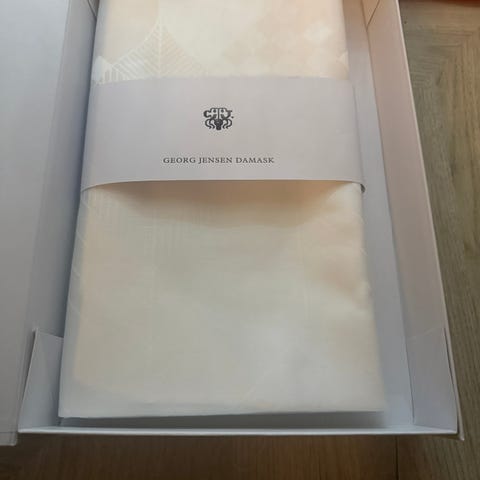 JULEDUG, SERVIETTER, LØBERE, FLOT DYB RØD JULEDUG MÅLER BREDDE 140 CM LÆNGDE 270 CM.OG 8 SERVIETTER I DEN SAMME FARVE DYB RØD FRA GEORG JENSEN. BRUGT FÅ GANGE. INGEN PLETTER ELLER SLID. HAR KUN ÆSKEN MED DUGEN I. KVITTERINGER HAVES. ÆSKEN TIL DUGEN HAR JEG.