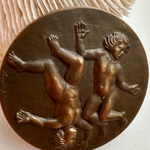 Jeg har et udstillingskatalog “Moderne polsk medaillekunst” fra museet på Koldinghus fra 1986. Denne medaje er ikke med i kataloget, men den er af samme type.