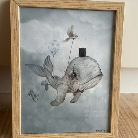 Billeder, MRS. MIGHETTO, motiv: Fantasidyr, b: 47,5 h: 57,5, INKLUSIV GULD GLASRAMMER!!