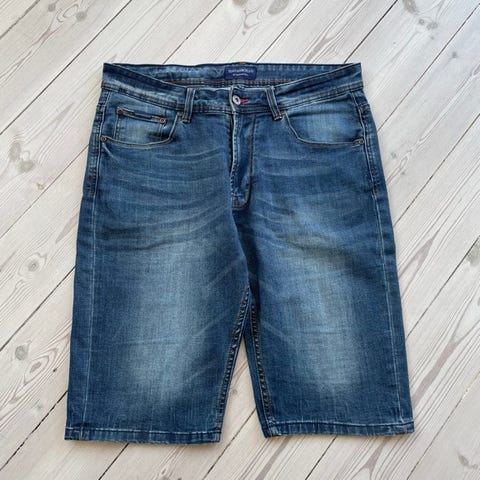 Shorts, Gino Marcello, str. 32, Blå, Jeans, Næsten som ny, Shorts med strecht brugt få gange da de er for store. Fra røg og dyrefrit hjem.
