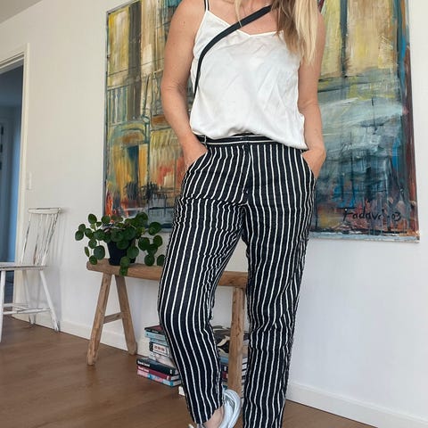 Bukser : loose fit og lidt korte i benlængde.