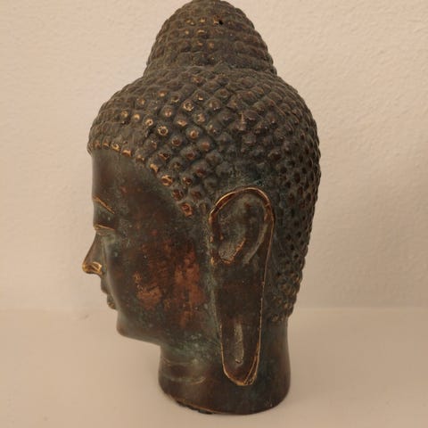 Buddah, Stor opretstående buddah, Stor flot opretstående buddah med blad guld højde ca 180 cm der er skade på bagsiden af hovedet hvor små