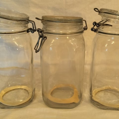 Glassene af mærket Fido og indeholder hver 0,5 liter.