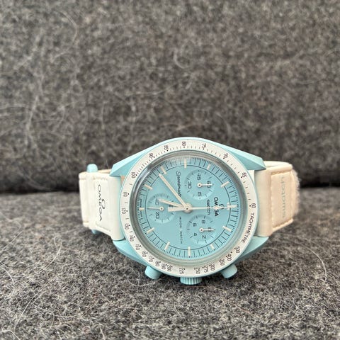 Herreur, Omega, Omega x Swatch “Mission to the Sun”, S033J100, årgang 2022, quartz, nystand. Komplet med boks og papirer.