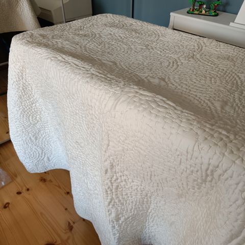 Sengetæppe, Silke tråde og stof, b: 210 l: 250, Flot indisk sengetæppe med 2 tilhørende pudebetræk.