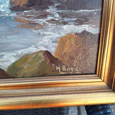 Oliemaleri, O. Bøye, Fint lille maleri. Malet i lidt naivt stil. Signeret: O. Bøye 65. Måler: 25 x 19 cm incl ramme.