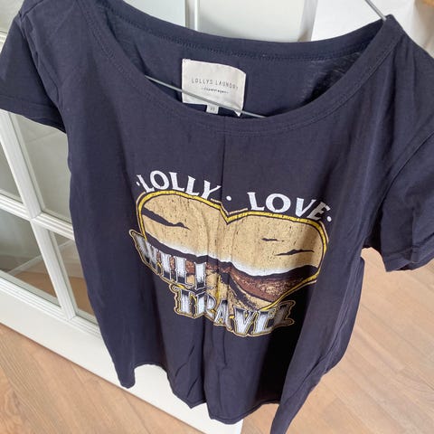 T-shirt, Lollys Laundry , str. 34, Blå/hvid, Bomuld , God men brugt, Fede retro look jeans.