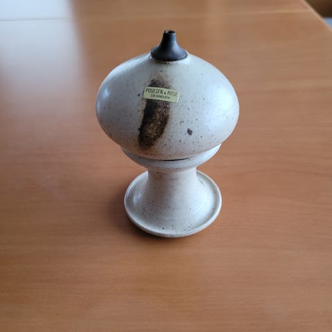Keramik olielampe , Poulsen & Riise Danmark, To flotte og helt nye og ubrugte olie stager i stentøj. Højde 9-10 cm. Meget Retro i udtrykket.