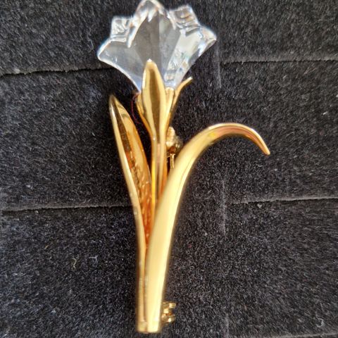 Broche, bijouteri, Swarovski, Sød lille engle broche i krystal fra Swarovski. Den fremstår som ny og ligger i den originale æske med lille folder fra Swarovski. Købt i Bruxelles, Belgien for ca. 10 år siden. Måler H: 3,5 x B: 2,5 cm.