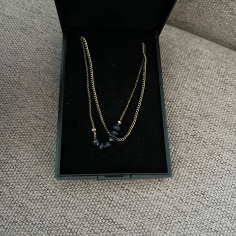 Halskæde, bijouteri, Fin gylden perlehalskæde, låsen skal lige sættes fast i den ene ende. Se billede for mål