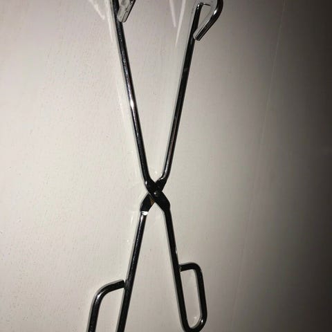 Grilltang med oplukker i toppen som holder den sammen, når den ikke bruges. Super smart. Helt ny og aldrig brugt. 40 cm. lang totalt. Fra ikke ryger hjem og aldrig brugt.