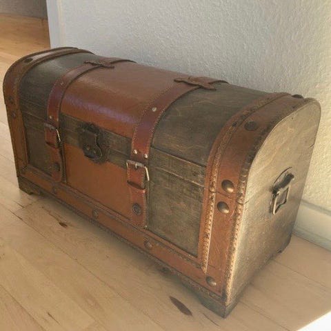 Norsk traditionel malet trækasse. Skattekiste med hængslet låg. Smykkeæske.