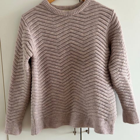 Sweater, Claire, str. 38, Mocca/creme, 100% Uld, Næsten som ny, Ualmindelig lækker & flot strik til de kolde stunder. Trods materiale er 100% uld, så kradser den ikke, hvad man ellers umiddelbart skulle tro