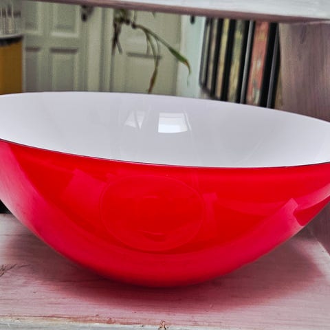 Den lille skål måler 12 cm i højden og 20 cm diameter og har et lille skår pris 100 kr