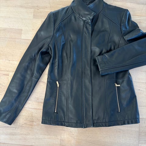 Læderjakke, str. findes i flere str., Carlsberg, Størelse L som ny.