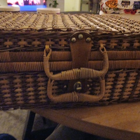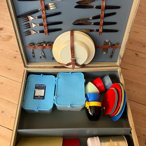 Picnic kuffert, Retro picnic kurv i fin stand med masser af retro ting . Med nøgle og alt virker