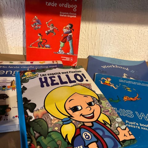 Har også ordbøger, lær dansk og engelsk, primært for børn., 69 kr.