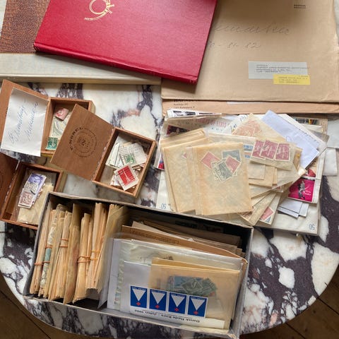 Blandet, stemplet, Samling, Privat mini samling. Der er tre store børger fyldt og 3 mindre bøger. Derudover er der en mindre købepakke der ikke er pakket ud samt en pose med frimærker som består af frimærker fra mange forskellige lande. Bemærk der er også frimærker der ikke er stemplet i samlingen.