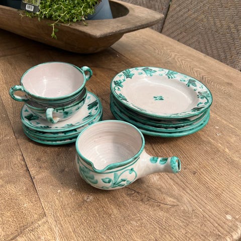Keramik, Tallerkener, Aksel Bruel, 2sidetall. 17,5cm 4u. Tall.16,5cm alle uden afslag eller revner. Lille bæger, h: 5,7 cm. Fyrfad 13x7 cm. Sm. Fejlfri stand.
