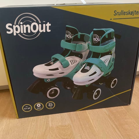 Rulleskøjter, Spinout, str. 27-30, Rulleskøjter sælges, da min datter er vokset fra dem. De kan reguleres i størrelsen 27-30, har lidt brugsspor, men de har gode hjul og lejer. Støvlen giver god støtte til anklerne. Kan sendes for købers regning.