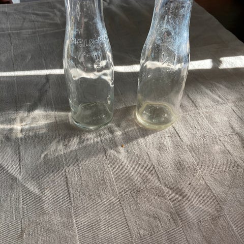 Gamle mælkeflasker, Mælk-Fløde 1 L, Flaskevaser, Gamle flasker, Retro