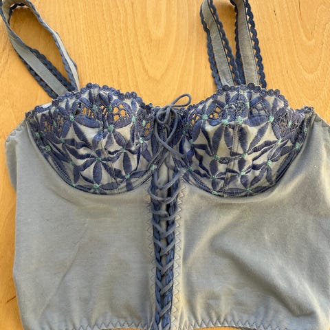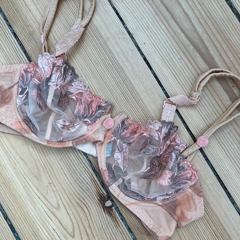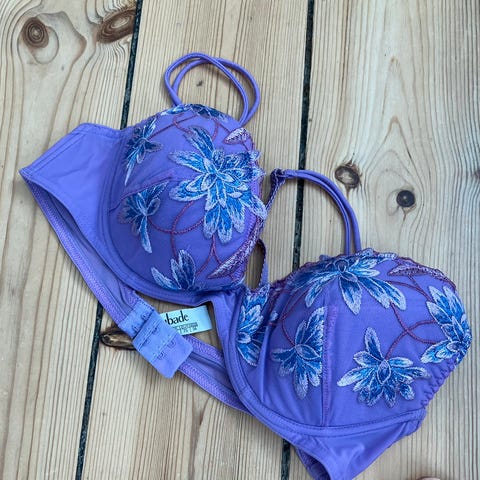 Selvsiddende bøjle-BH/soltop fra Aubade i lys, støvet aubergine. Lukkes i begge sider, hvilket giver en super god pasform, strop om nakken kan tages af. Størrelse 85B. Ny, men tags klippet af, vaskemærker sidder i.