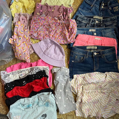 Blandet tøj, str. 80, Sommergarderobe: Bukser, t-shirts, soltop, langærmet bodystocking og langærmet bluse (5 dele). Mærker: H&M, Little One og MM. Primært i 100% bomult. Brugt en sæson af vores datter, men fremstår stadig som nyt. Kan vaskes ved 40/60 grader, og det meste kan også tørretumbles. Kommer fra røgfrit hjem uden husdyr. Kan afhentes i Horsens eller sendes (dog ikke med Fiks Færdig). Se også mine andre annoncer med børneting på DBA