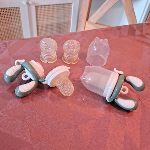 Sut, Kidsme food feeder, Kidsme, Sutterne er blevet brugt i få uger. Der medfølger en helt ny og ubrugt sut med ved siden - så der i alt er 3 sutter til. Kan afhentes eller afsendes mod gebyr.