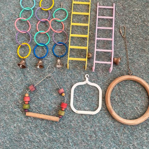 Har en stor portion fuglelegetøj som er blevet tilovers, og som sælges meeget billigt, der er ialt 8 ting. Ved køb af det hele koster det KUN 120kr det bliver til KUN 15kr pr stk når du køber det hele