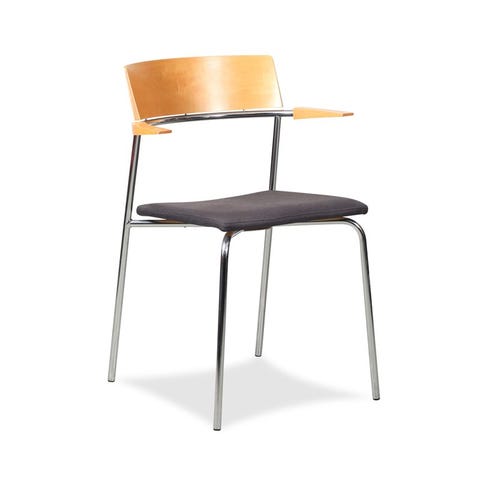 Konference-/mødestol, Brugt Randers+Radius Cirkum konferencestol Mørkebrun xtreme polster på sædet og ryg-/armlæn i ahorn, på grå stel H:77 x B:56 x D:52 cm. Siddehøjde:45 cm.