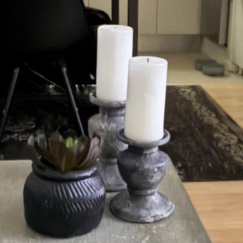 Broste Copenhagen lysestager, 2 stk. 10 og 13 cm høj. I grå, Bordeaux og hvid stentøj. Fejler ingenting. Kan vendes to veje, enten til stagelys eller bloklys. Nypris: 820kr