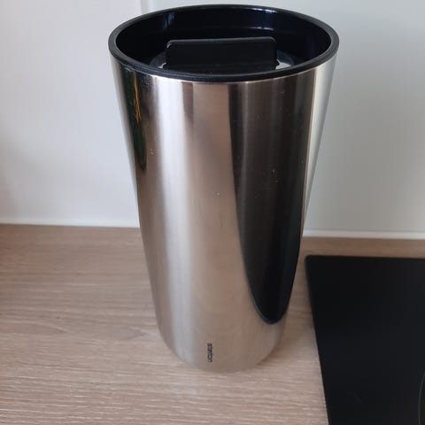 Rustfrit stål, Termokop, Nissan, Nissan metal termokop. Højde 17,5 cm. Kan sendes.