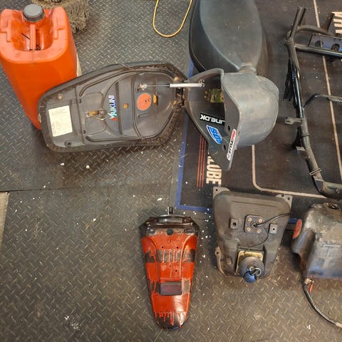 Blandede scooterdele og støbejerns cylindere, Jeg har fundet lidt gamle scooter cylindere fra fordums tid.. Lad vær' med at stille mig en masse spørgsmål om det passer på din mormors Hot50. Læs, se eller ta' chancen: Det er til lodret og vandret Minarelli. Der er også rem (formentlig til Sonic/Jog) og lidt til en kobling. Jeg synes det ligner en Polini sport 50cc og en smadret Athena racing til vandret og så er der 2 til lodret (bws) cylindere. Det ligner en Malossi i 70cc og den anden ved jeg ikke. De trænger til honing og kærlighed. Der er de billeder, som der er - og jeg har ikke mere info end det som står. Ta' chancen eller la' vær'. Befinder sig i Aarhus tæt på Storcenter Nord. Sælges kun samlet
