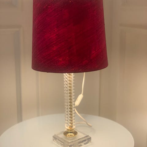 Lampens samlede højde inkl. skærm: 48 cm. Skærmens diameter på bredeste sted: 34,5 cm. Højden på lysestagen: 9 cm.