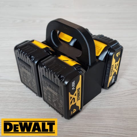 DeWalt batteriholder, Batteri holder til DeWalt batterier som kan monteres under hylde eller væg med 2 skruer. Er 3D printet i PLA+.