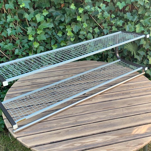 Hattehylde, Oscarssons Möbel, Model Cora. Lakeret egetræ, Bredde: 90 cm, Dybde: 31,5 cm. Matsort stål.