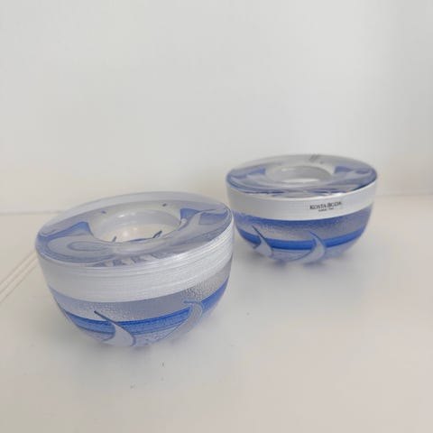 Glas, Fyrfadsstage, Kosta boda, 2 st flotte tunge Fyrfadsstager fra Kosta Boda.