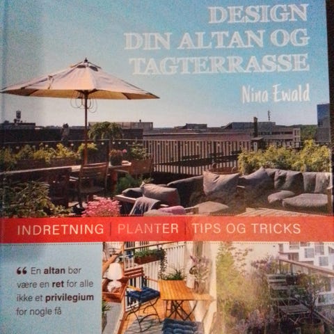 Forfatteren Nina Ewald er både uddannet indretningsarkitekt fra Danmarks Designskole og en erfaren havebogsforfatter. Hun har skrevet adskillige bøger om boligindretning og havedesign, og sin viden om ude og inde fletter hun sammen i Design din Altan og Tagterrasse.