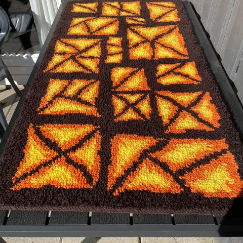 Vægtæppe, Rya, Rigtig flot rya tæppe med hest højde 67 brede 110 cm . Det er retro fra 70”erne . Det er helt som nyt , ingen dårlig lugt eller været i røget rum