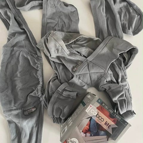 Bæresele, Strækvikle, Caboo / Close, Dette er en super nem og virkelig brugervenlig vikle/slynge i flot mørkegrå farve. Den vil passe samme med stort set alt tøj.