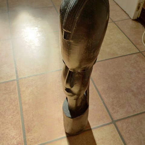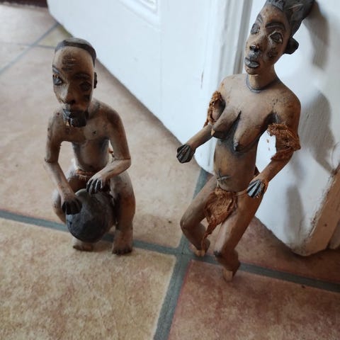 Håndskåret træ figur, Afrikansk håndskåret træ figur af en medic mand, fejler intet. Han kan holde en pind i venstre hånd.