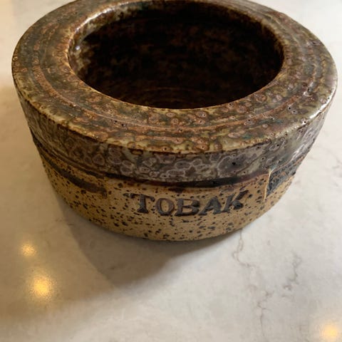 Keramik, Tue Poulsen keramik, Håndlavet - Tue Poulsen Keramik dåse til tobak med korklåg.