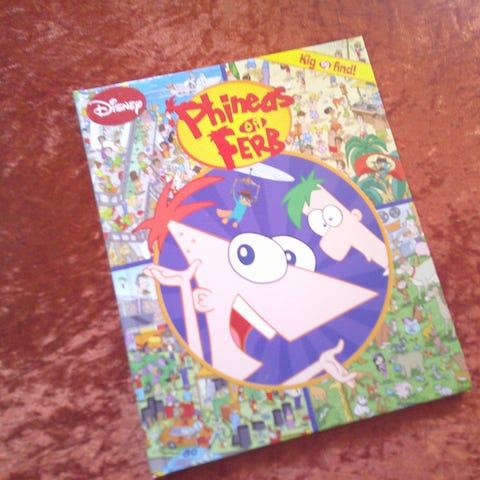 Phineas og Ferb - Findebog, Art Mawhinney, Findebog. Kig og find - Phineas og Ferb. Af Art Mawhinney. Disney. Hardback i stort format. Billedbog. Forlaget Karrusel, 2012. Flot eksemplar