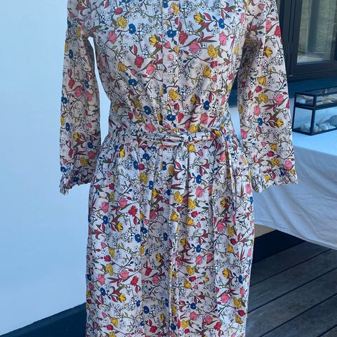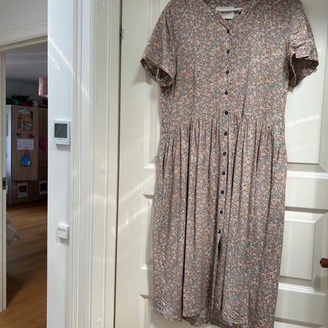Sommerkjole, Lollys Laundry, str. S, Mørkeblå med blomster, 100% viscose, Ubrugt, Freddys Dress - nypris 1399,-