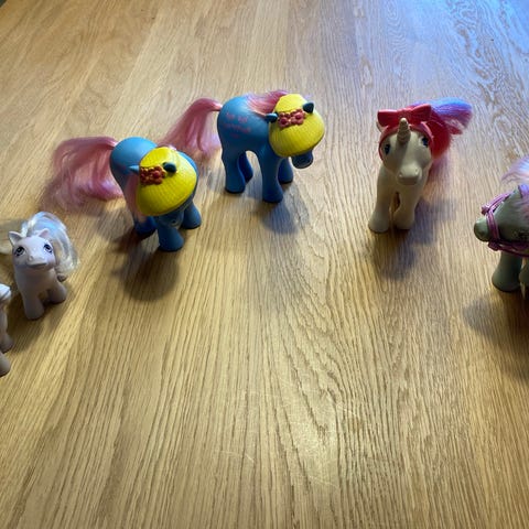 De 5 store heste er de originale hasbro heste fra 80’erne sammen med sko, tøj, rulleskøjter, sadler og kamme
