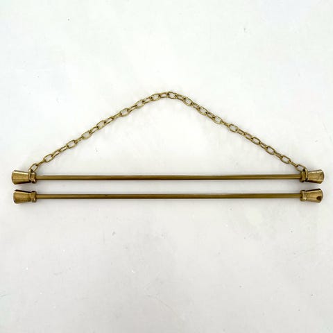 Et sæt vintage broderibeslag i børstet messing til et lille vægophæng. Beslag er håndlavet i Danmark og ligger i original pose.