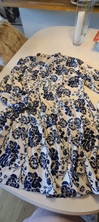 En mindre fejl i indfarvning/vævning i mønsteret, se sidste foto, det har dog ikke betydning for kjolens stand