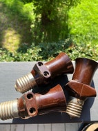 Foto 3-4 Særdeles fede antikke/vintage brune bakelit “Snydepropper” med fatning til pære samt alle med 2 sidestik